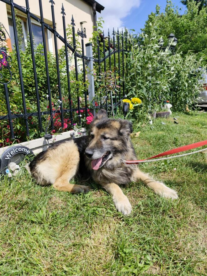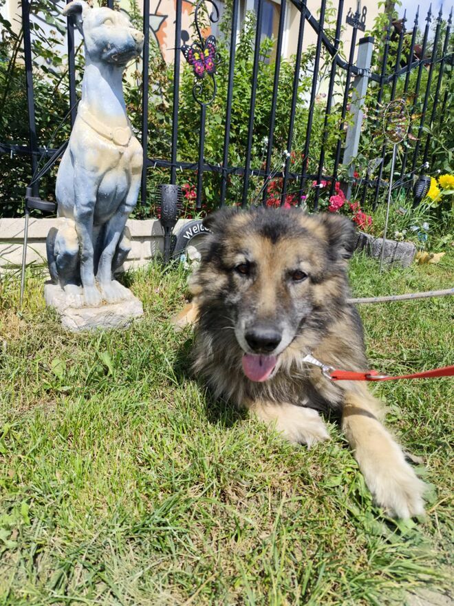 Okazało sie, że to bardzo przyjazny do ludzi psiak i nie ma nawet 10 lat. Wzmocnił sie, nabrał sił i energii.
