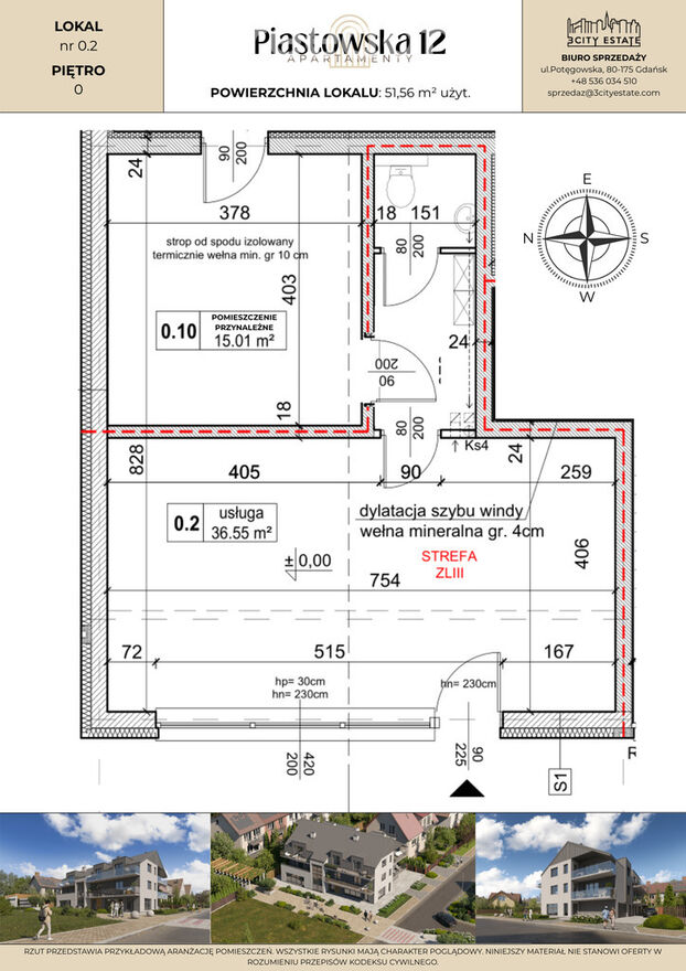 Lokal o powierzchni 36,55 m² użytkowej znajduje się na poziomie 0