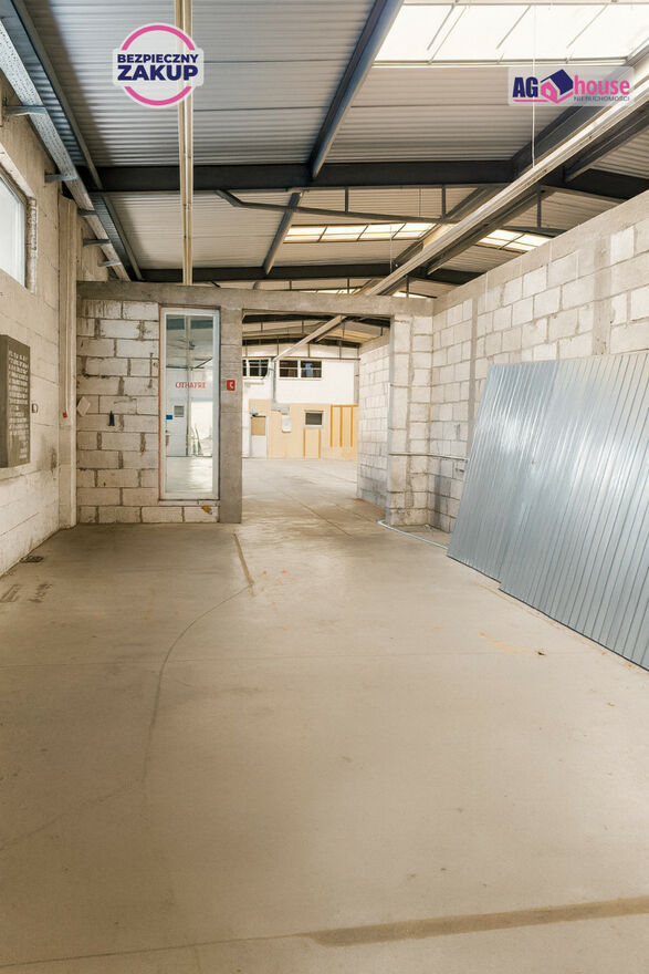 Przestronna, wysoka hala z bramą wjazdową, idealna do produkcji, magazynowania lub działalności usługowej.