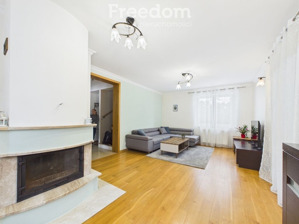przestronny, jasny salon z kominkiem tworzącym wyjątkowy klimat,