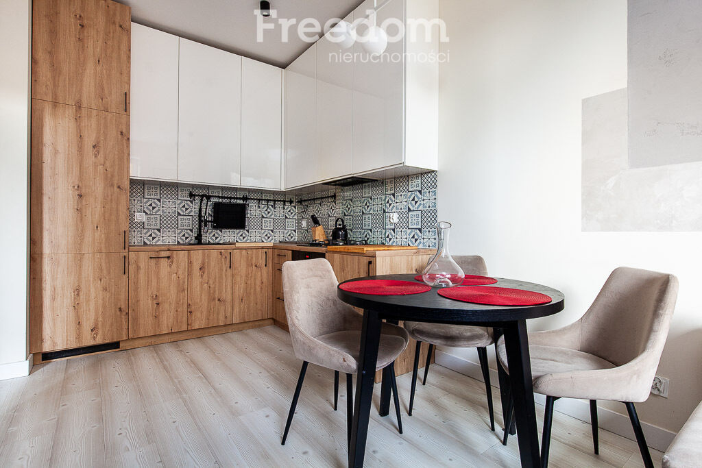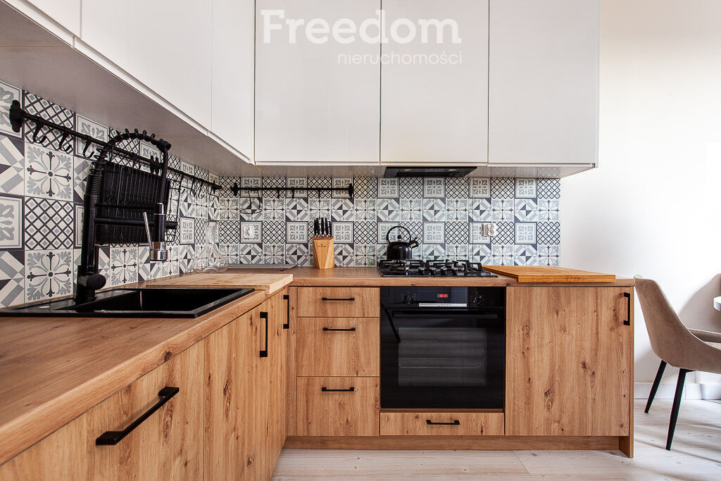 W mieszkaniu znajdziemy w pełni wyposażoną kuchnię, funkcjonalną