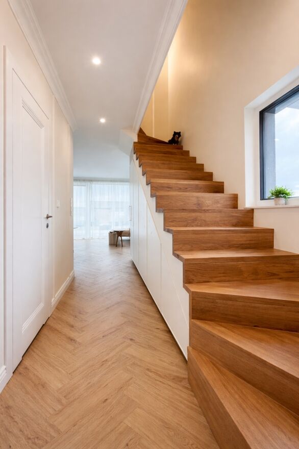 Nowoczesne ogrzewanie z pompą ciepła i ogrzewanie podłogowe we wszystkich pomieszczeniach (Vaillant).
