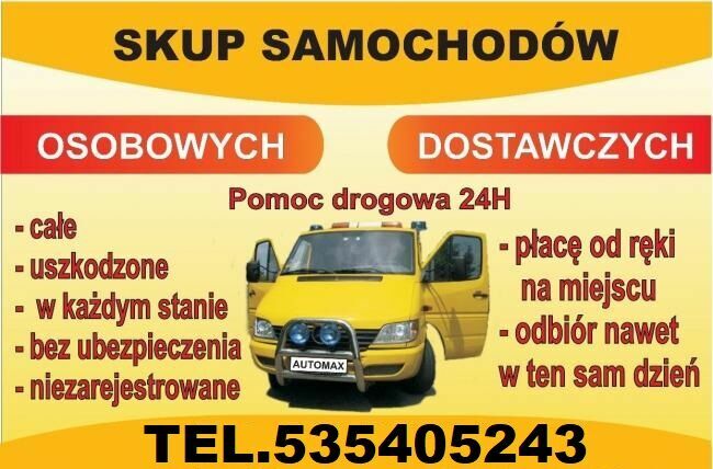 Skupujemy Auta w Każdym Stanie Osobowe,Dostawcze,Vany, Całe, Rozbite, Skorodowane, Bez Opłat, Z Opłatami, Angliki Każdy Model,Każda Marka Bez Wyjątków! Płacimy Najlepsze Ceny i Zabieramy Auta Od Razu Przedwstępna wycena Przez Telefon! Gotówka Od Ręki! Dojazd Do Klienta Oczywiście Gratis! ZŁOMOWANIE-KASACJA AUT PŁACIMY NAWET ZA WRAKI AUT Dojeżdżamy tego samego dnia Do klienta na terenie woj.pomorskiego Auta Zabieramy Własnym TransportemSprawdź zainteresowanie tym ogłoszeniem